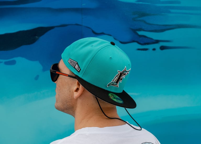 Product launch imagery capturing the Wynwood Walls × Miami Marlins collaboration through bold color and cultural alignment.
