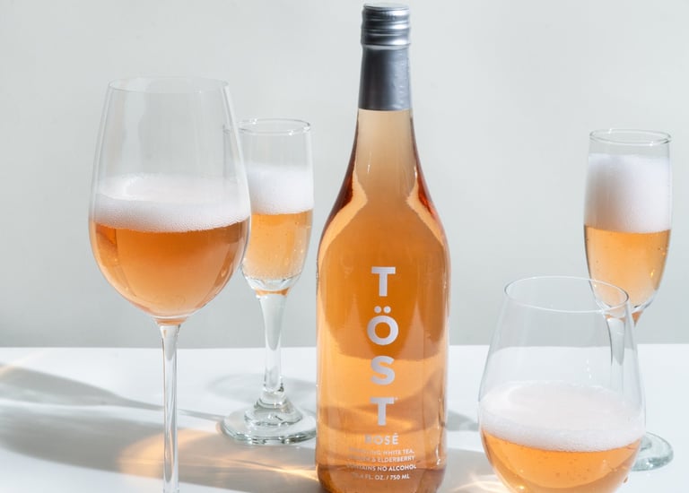 Product imagery positioning Töst within the visual language of luxury champagne.