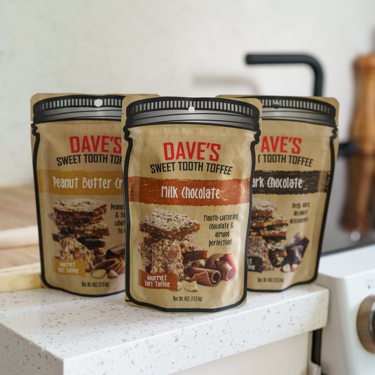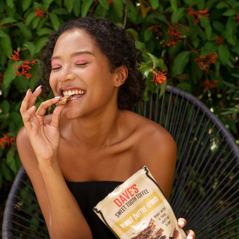About: This project was created to visually communicate the range of flavors and the ease of enjoyment behind Dave’s Sweet Tooth Toffee. Through natural, lifestyle-driven imagery, I positioned the product as both indulgent and effortlessly snackable. From styling to final execution, the imagery demonstrates my ability to translate brand goals into cohesive visuals that highlight product appeal, usability, and consumer connection.