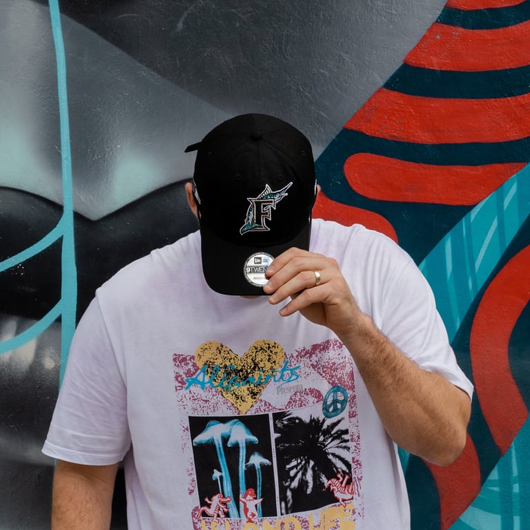 About: This project was created to visually launch the collaboration between the Wynwood Walls and the Miami Marlins, celebrating a hat design inspired by the team’s original color way. By placing the product against the vibrant murals of Wynwood Walls, I aligned brand heritage with contemporary street culture. The final visuals demonstrate my ability to take collaborative brand vision and translate it into location-driven product photography built for launch, promotion, and storytelling.